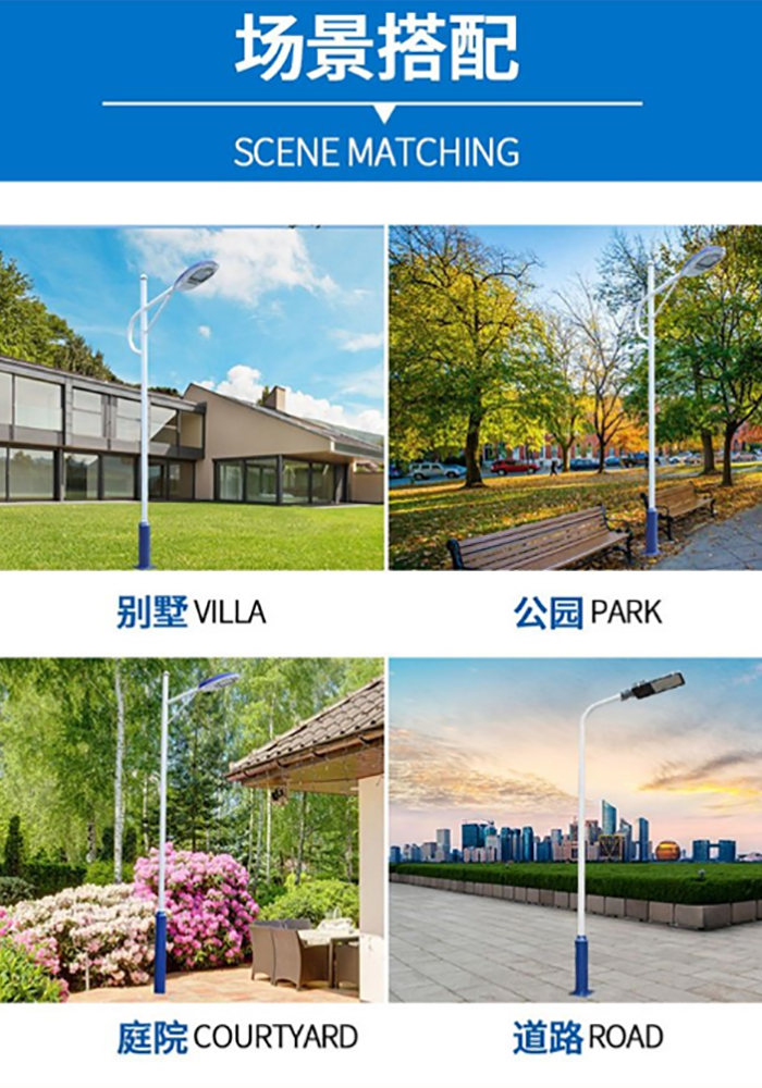 3.美觀大方:市政路燈的外觀設(shè)計(jì)和材料選擇,可以根據(jù)城市特點(diǎn)和風(fēng)格進(jìn)行定制,使之與城市環(huán)境相融合,增加城市亮點(diǎn)。