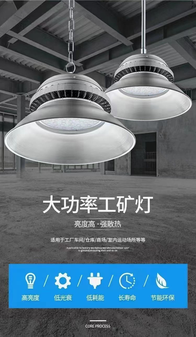 工礦燈,又稱高天棚燈,是一種高能效的室內(nèi) LED 燈具,可以廣泛應(yīng)用在工業(yè)廠房、生產(chǎn)車間、商超、體育娛樂(lè)場(chǎng)所以及倉(cāng)庫(kù)等。按照明功能可分為一般照明燈和局部照明燈兩種。為了滿足不同生產(chǎn)作業(yè)的視覺需要和燈具安裝條件的需要,工礦燈的反射器應(yīng)能產(chǎn)生各種寬窄程度的光分布。表面涂漆、涂釉使之呈現(xiàn)白色,和用鋁、玻璃鏡、棱鏡玻璃等材料制成的反射器,都可以得到寬的光分布,適合于大面積、工作面垂直或接近垂直的工作場(chǎng)所。對(duì)于高大廠房和有高大機(jī)床的需要單獨(dú)照明的場(chǎng)所,可采用棱鏡玻璃、鏡面玻璃和拋光鋁等控光性能強(qiáng)的材料制成的反射器,得到窄光束分布。